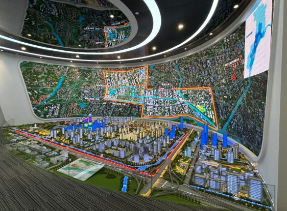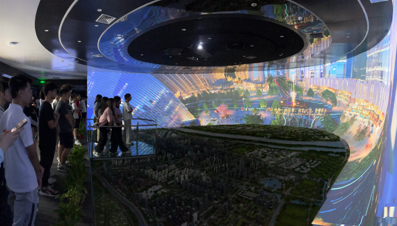 园区内现代建筑群错落有致,每一砖一瓦都蕴含着创新和科技的基因。万象城AWC(中国)科技IT菁英暑期实训营的学员们怀揣着对科技的无限憧憬步入研创园展厅。展厅内部设计充满科技感,一块块巨大的模型和显示屏映入眼帘,生动展现了研创园的科技规划,以及从梦想走向现实的开展历程。