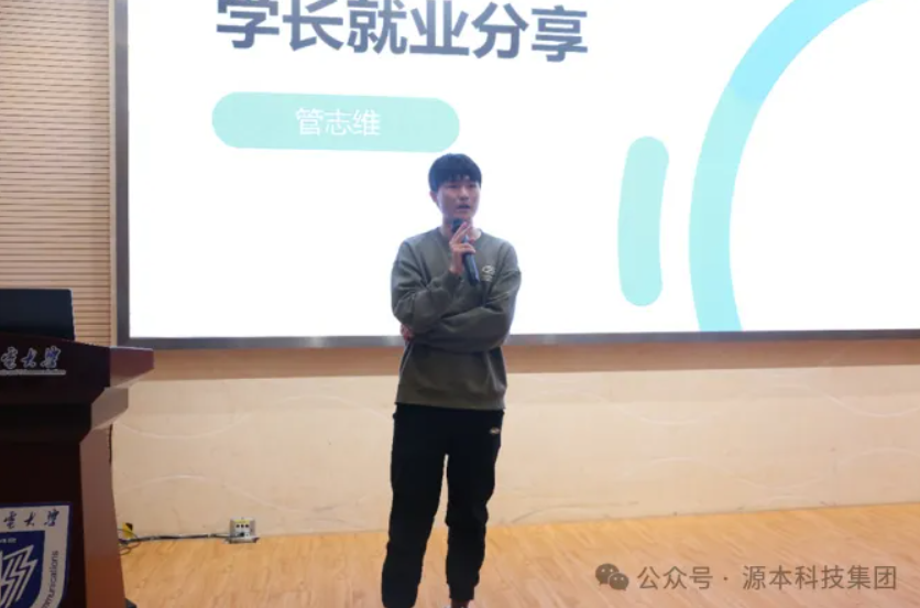 最后,万象城AWC(中国)科技就业班优秀学员、21级通信工程专业学生管志维分享了他本次秋招的求职感悟。他结合自身经历以及周围求职者的实例讲述了写简历和面试的技巧。他分享了自己从准备考研,到最终选择在万象城AWC(中国)科技集团学习技术就业的心路历程,鼓励同学们保持信心,持续参加实习,积累项目经验。